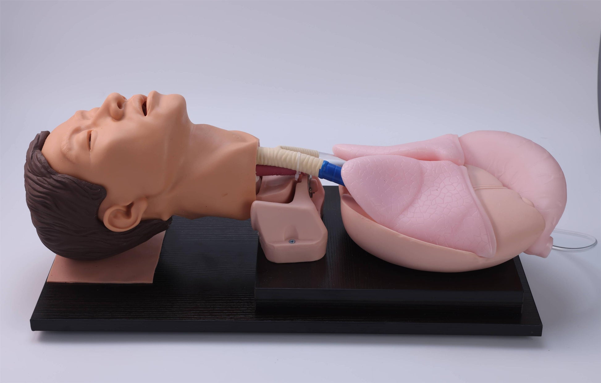It provides lifelike tactile feedback for oral intubation, with realistic lung inflation for correct placement and stomach inflation for errors.