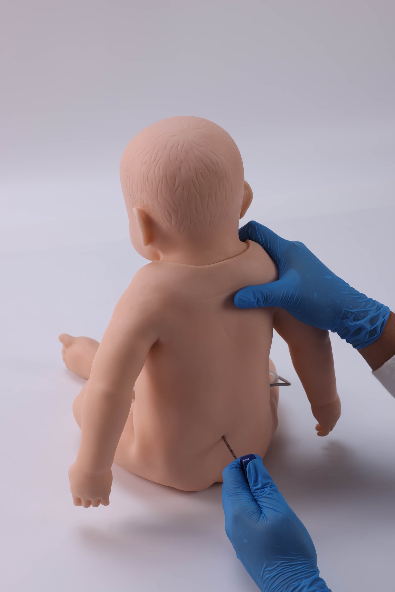 This model simulates a 5-month-old infant with accurate anatomical structure and clear bony landmarks. It is designed for lumbar puncture training, featuring realistic needle insertion levels, tactile feedback, and operation error prompts.